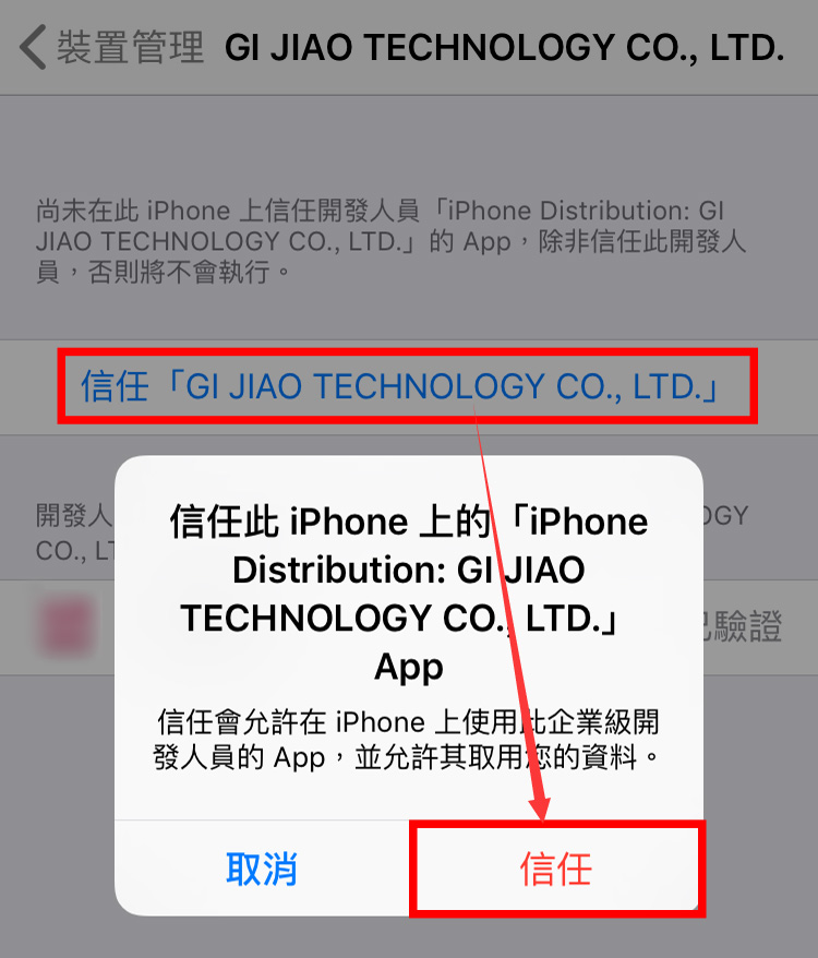 STEP2. 找到尚未信任的描述檔,並點選信任。